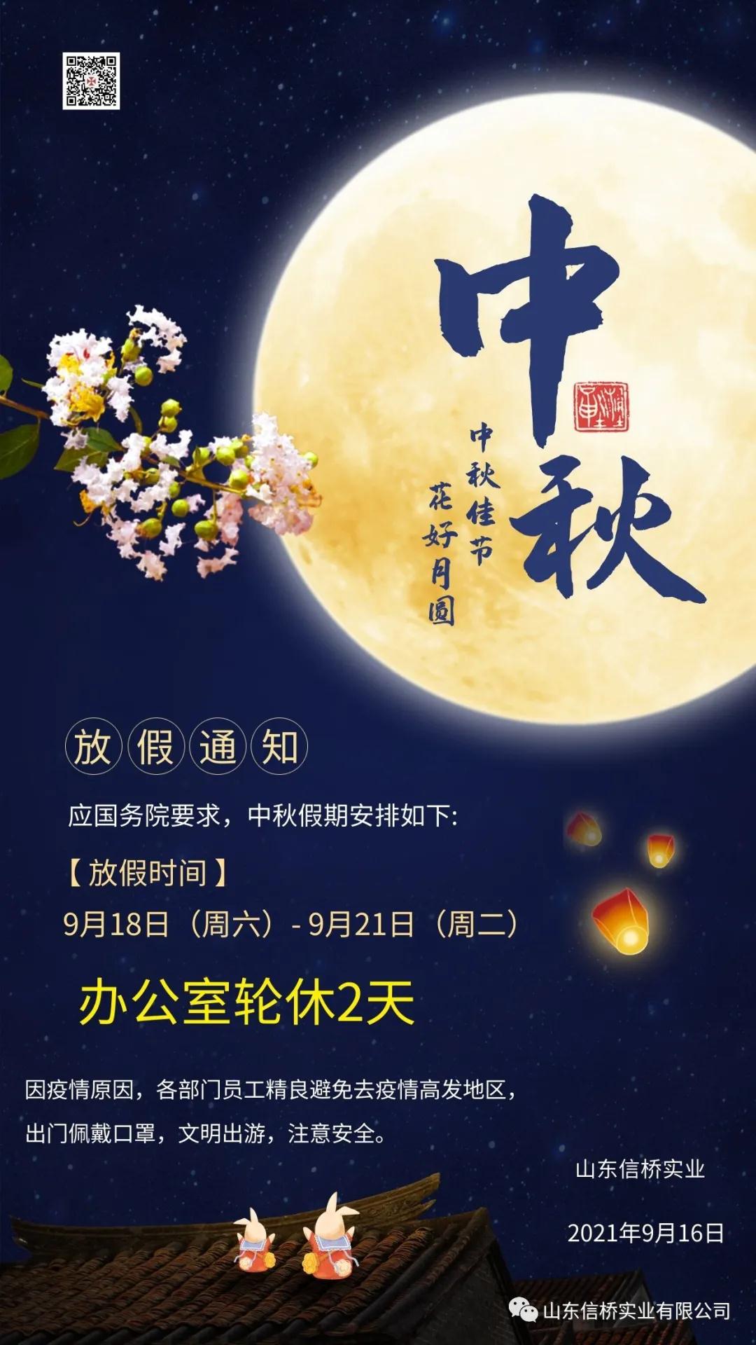 山東信橋?qū)崢I(yè)有限公司中秋節(jié)放假通知