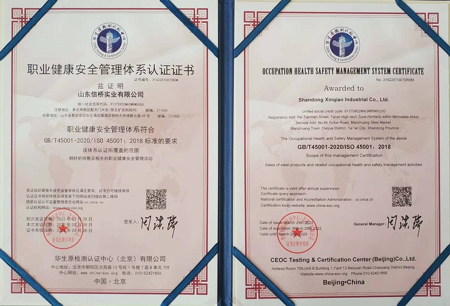 職業(yè)健康安全管理體系認(rèn)證證書