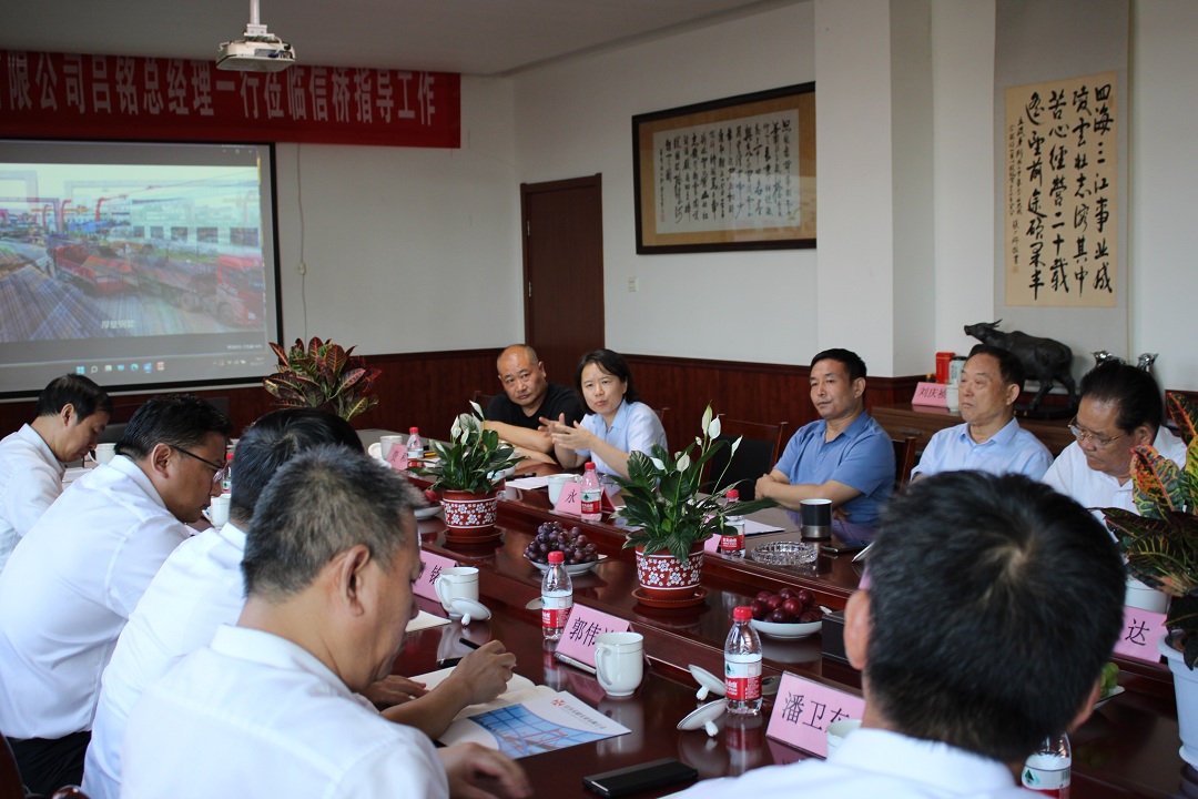 2022年7月7日,山東鋼鐵集團(tuán)總經(jīng)理、黨委副書記呂銘,山鋼股份營(yíng)銷總公司黨委書記、總經(jīng)理郭偉達(dá)一行到泰安信橋考察調(diào)研,集團(tuán)董事長(zhǎng)徐立波、總經(jīng)理徐宏、泰安市鋼貿(mào)商會(huì)王炳坤以及其他相關(guān)公司負(fù)責(zé)人等熱情陪同。