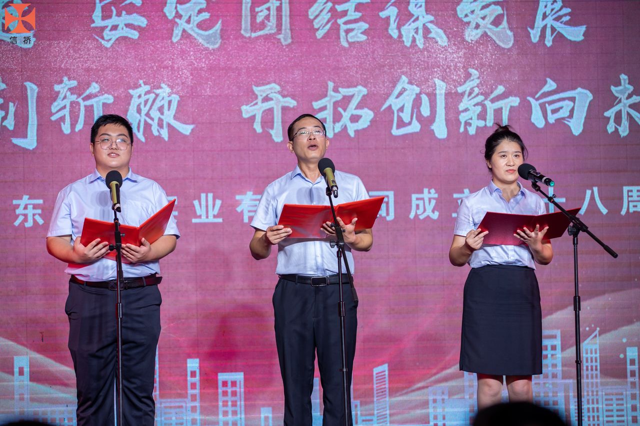 歲月如歌,風(fēng)霜如畫,二十八年彈指一揮間,山東信橋?qū)崢I(yè)有限公司(以下簡稱山東信橋)迎來了二十八周歲的生日。二十八年來,信橋人在激烈的市場競爭中奮力拼搏、砥礪前行,接受了市場風(fēng)風(fēng)雨雨的洗禮,取得了累累碩果。為了慶祝這一特殊的日子,2022年8月8日,以“激流勇進,安定團結(jié)謀發(fā)展 披荊斬棘,開拓創(chuàng)新向未來”為主題的山東信橋二十八周年慶典活動在寶盛大酒店舉行。