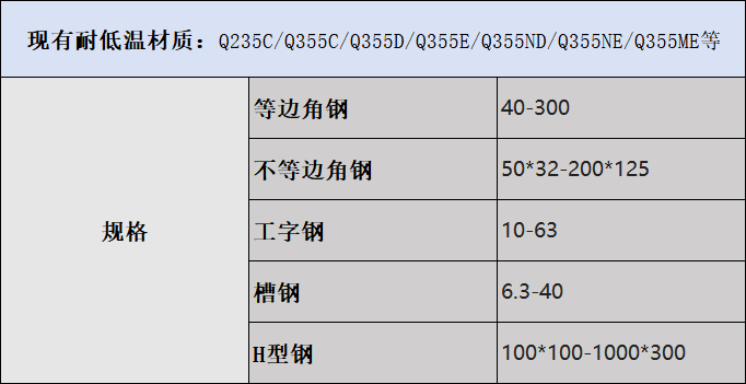 信橋國標庫存構成如下:國標型材應有盡有,耐低溫、低合金、各種規(guī)格齊全。